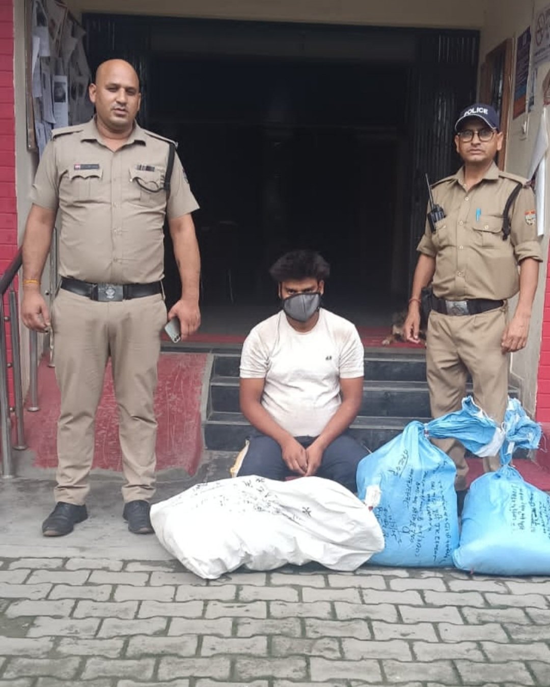6- 02 पुट्टी के कट्टे जे0के0सीमेंट वाल पुट्टी पुलिस टीम