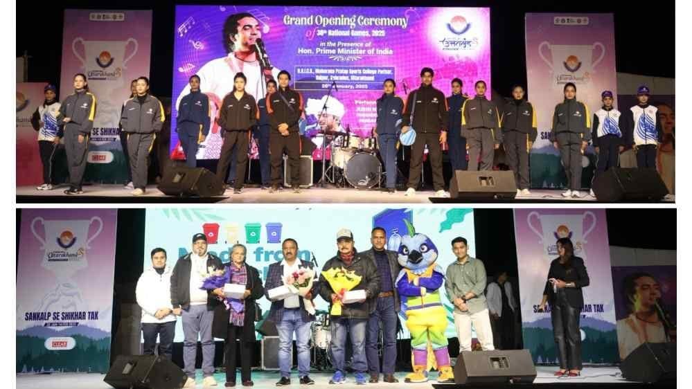 शाम की शुरुआत राष्ट्रीय खेल के मैस्कॉट “मौली” के साथ हुई, जिसने दर्शकों को जोश और उत्साह से भर दिया। हिमालयन मोनाल पर आधारित मौली, राज्य की प्राकृतिक सुंदरता और ऊर्जा का प्रतीक है, और इसकी खास उपस्थिति ने दर्शकों को आकर्षित किया।